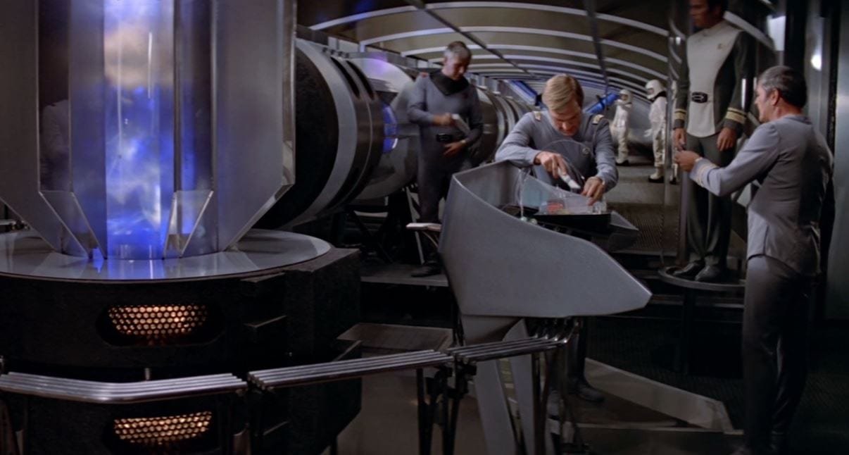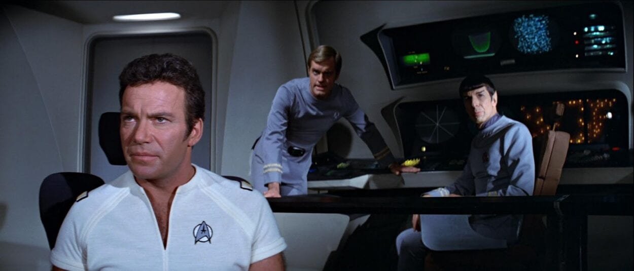 “Trek works best when it doesn’t overthink its technology and puts a human element to that tech. Without that human touch, though, we can never improve beyond our place today, ” says Cahlamer. The Motion Picture is loaded with technology with human failings: transporters that don’t work quite right, engines that are just out of tune, a ship a few hours away from being ready. Oh, and not to mention a satellite that was launched into space that has returned home and gained sentience! But there is also an obsession with this technology that drives not only humanity on the macro-scale but Kirk on the micro-scale.